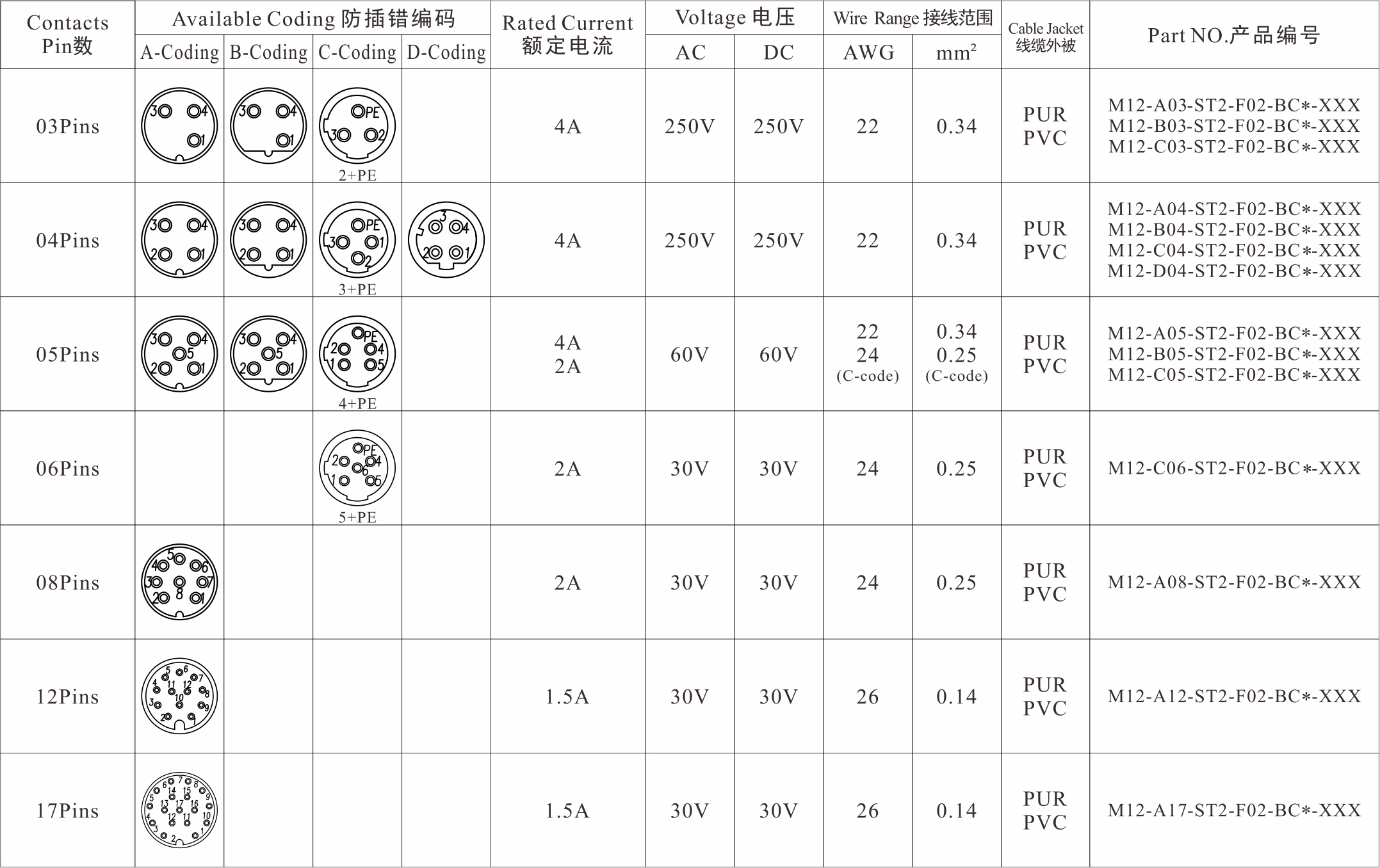 Part No:M12-X**-ST2-F02-BC*-XXX