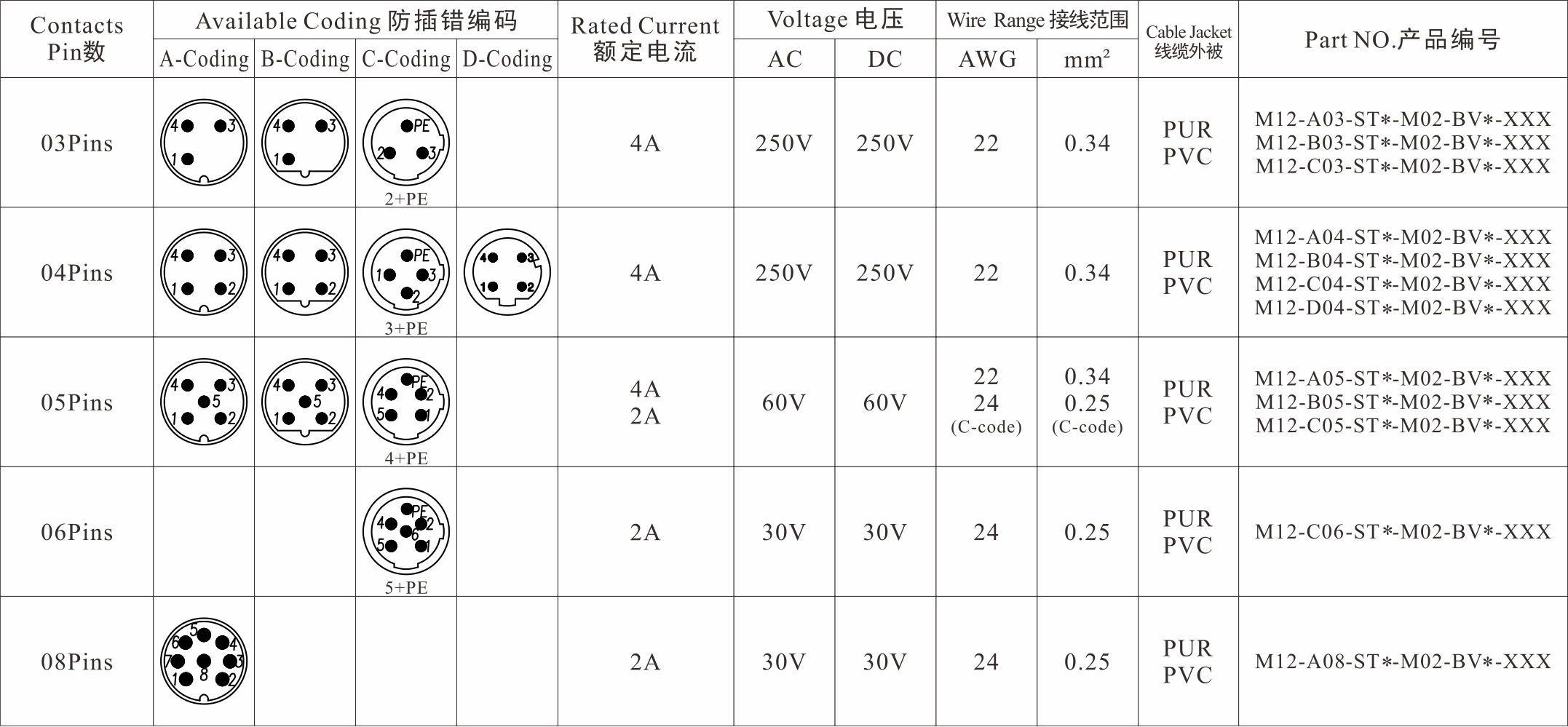 Part No:M12-X**-ST0-M02-BV*-XXX