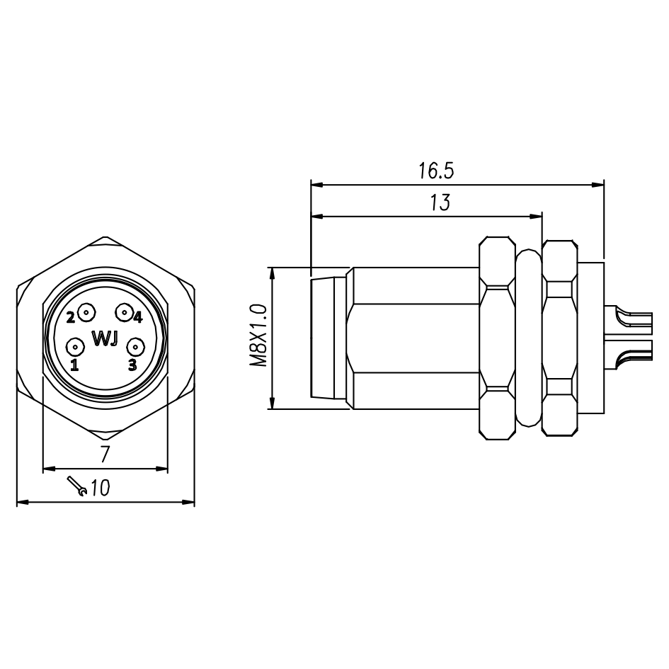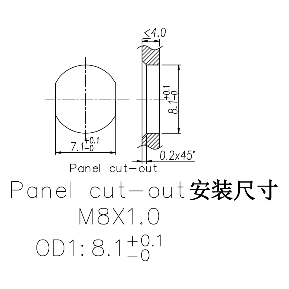 M8 Male Panel Mount, Solder Type, Front Fastened