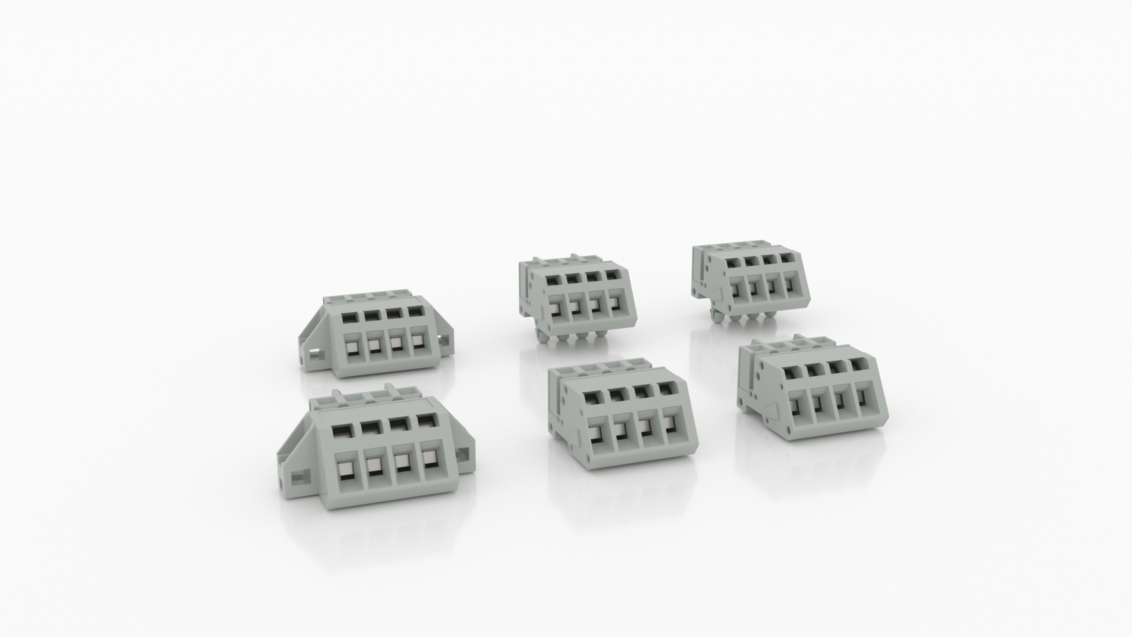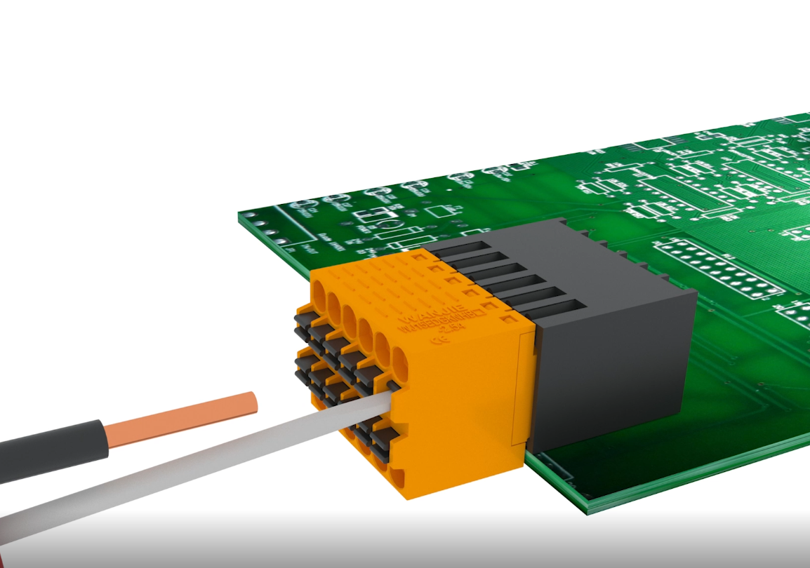 - 节省空间的单,多层PCB接线端子,带有推压键;