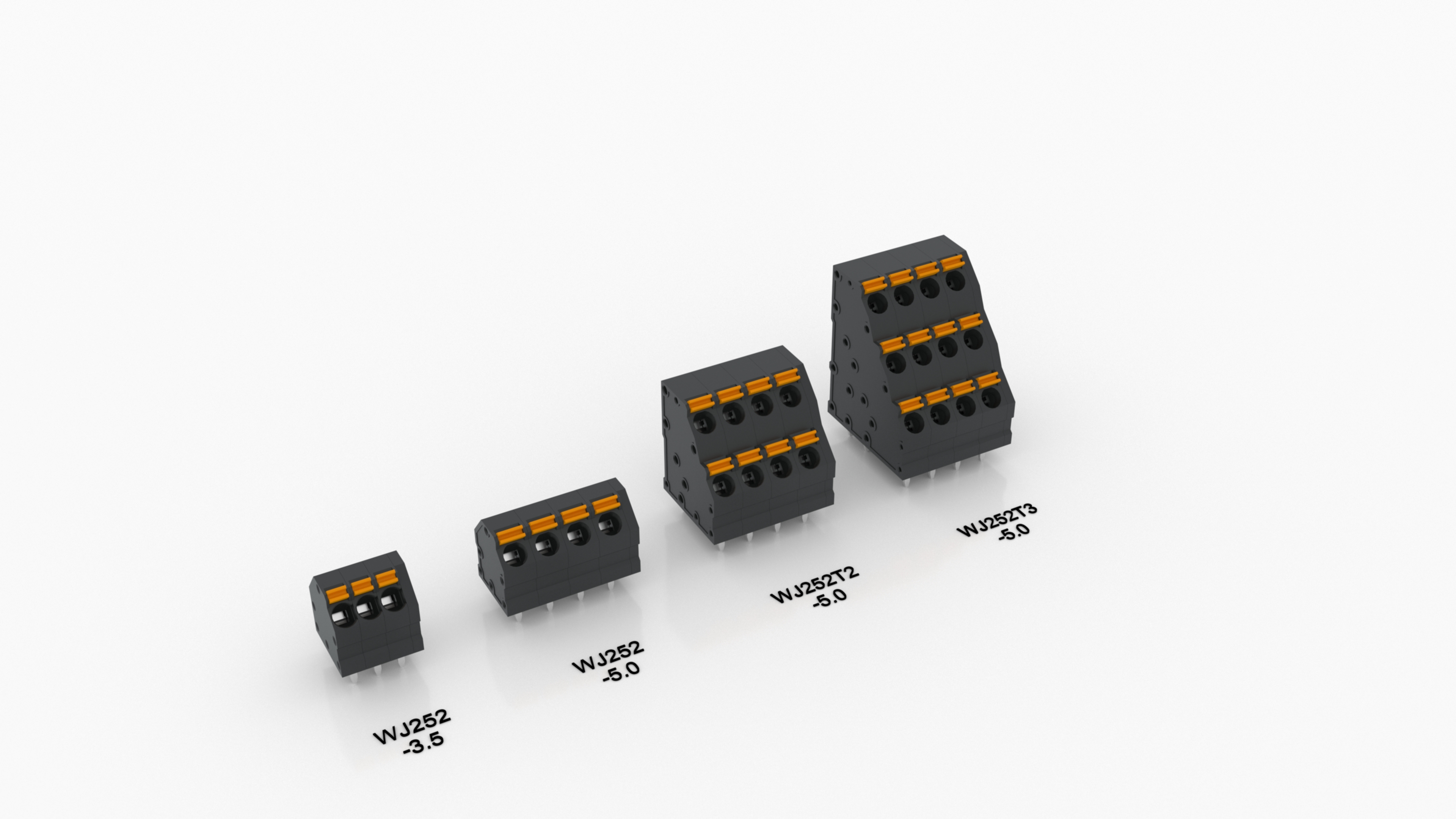 采用PUSH-IN直插式连接技术、目前兼容回流焊技术的WJ212系列SMT产品系列进一步壮大了,