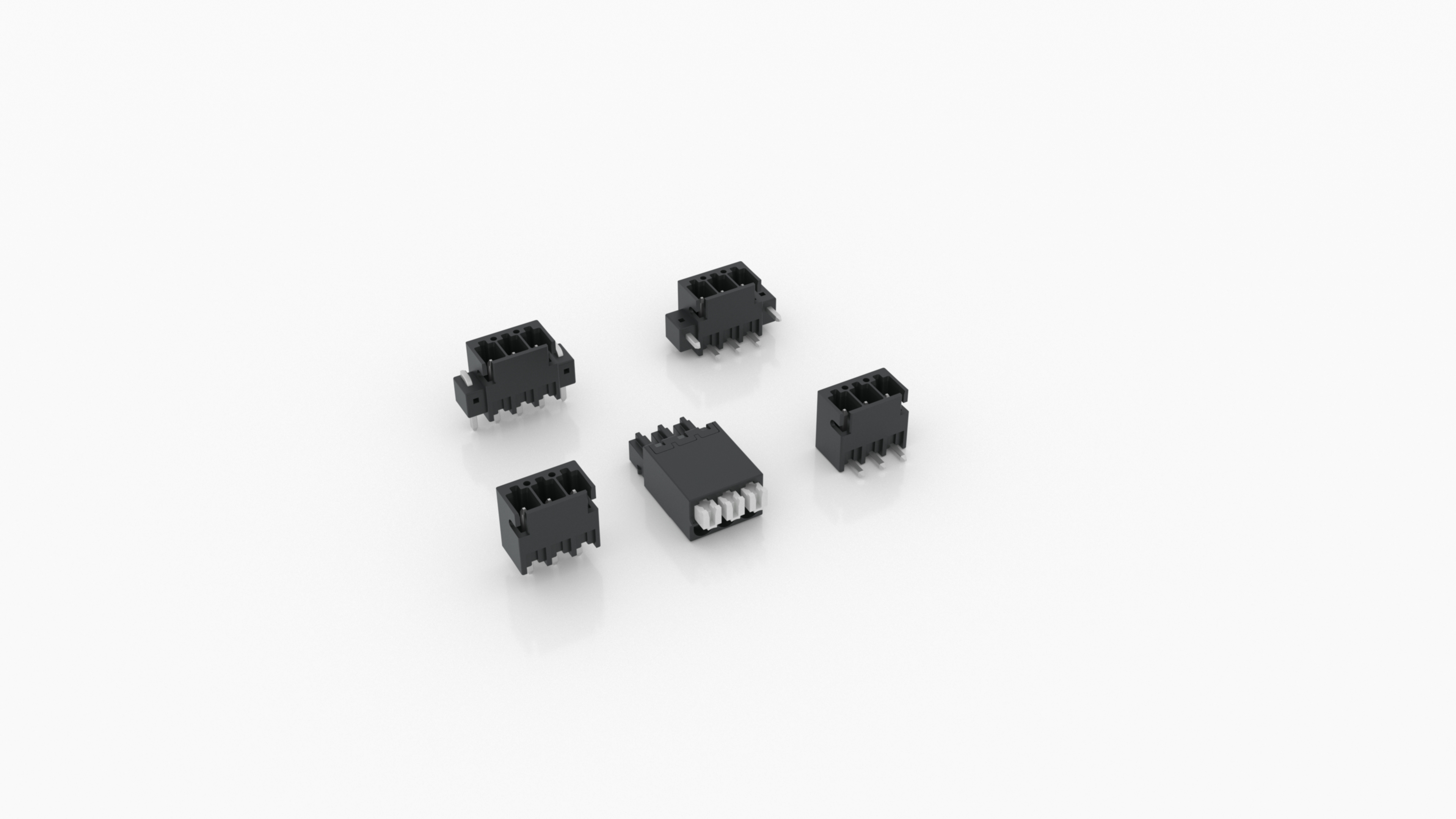 - 竖直连接可实现在PCB上多排布局。附加的焊针可降低焊接点上的机械应力。
