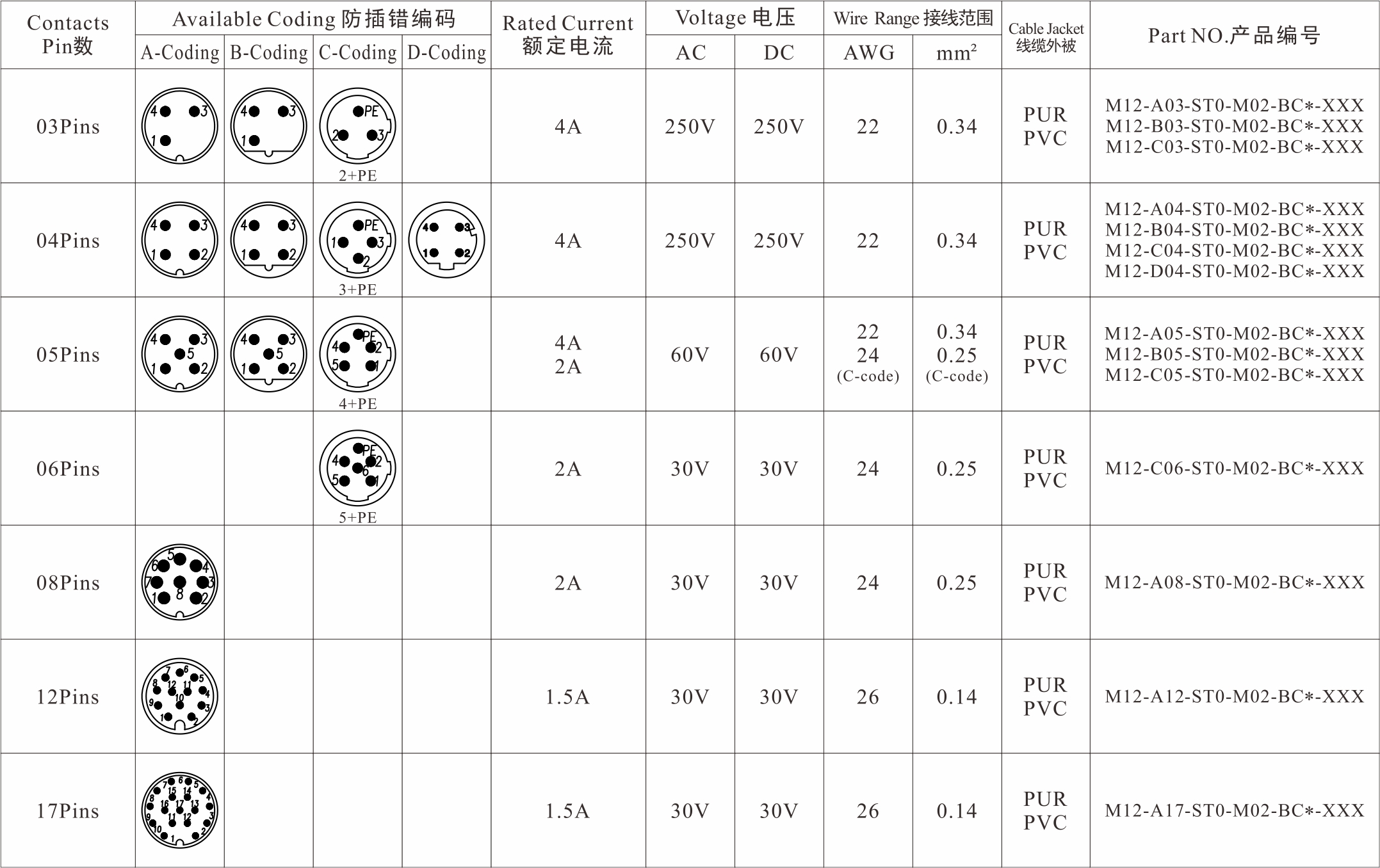 3/4Pins5Pins6/8Pins12/17Pins