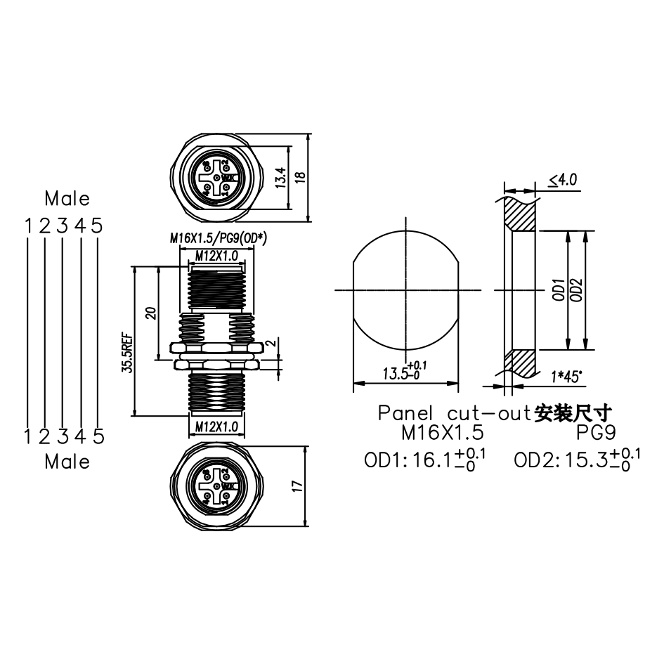 BM*:1=M16X1.5  2=PG9,...(OD*)