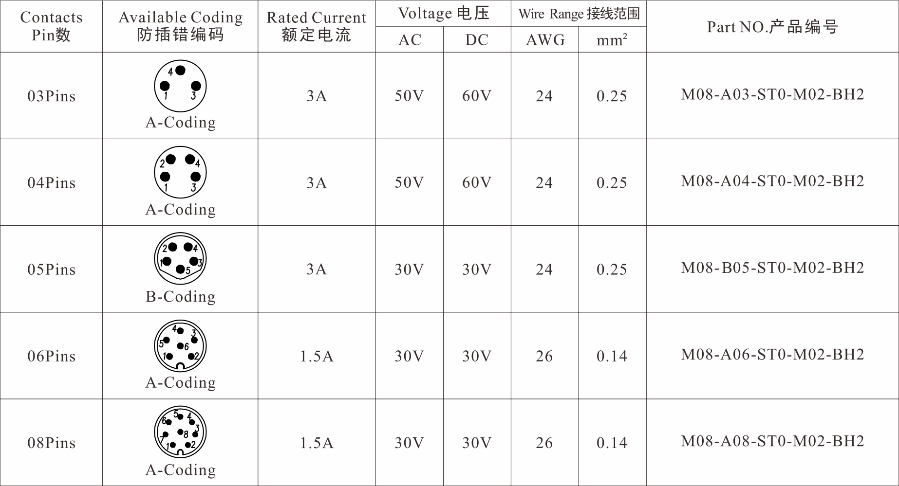 Part No 产品编码:M08-X**-ST0-M02-BH2