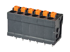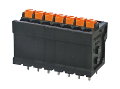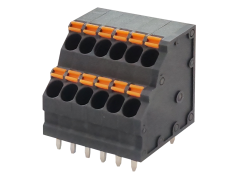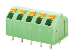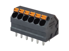 弹簧式PCB接线端子,接线分笼式和V形弹簧连接方式,具有抗振特点,可以连接截面为0.08mm²至16mm²的所有类型的导线,间距2.5mm至10.16mm可供选择,可以同螺钉连接PCB接线端子相互替代使用,增加了灵活性。产品设计符合IEC60998、UL1059、UL486E、CSA C22.2  No.158等国际标准。