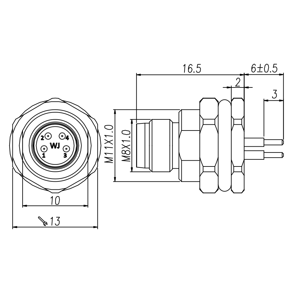M8 Male Panel Mount, PCB Type, Front Fastened