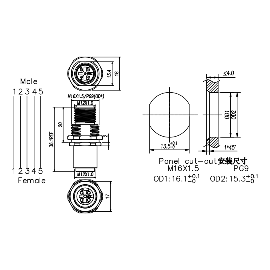 Panel Mount I-Adapter, Male-Female