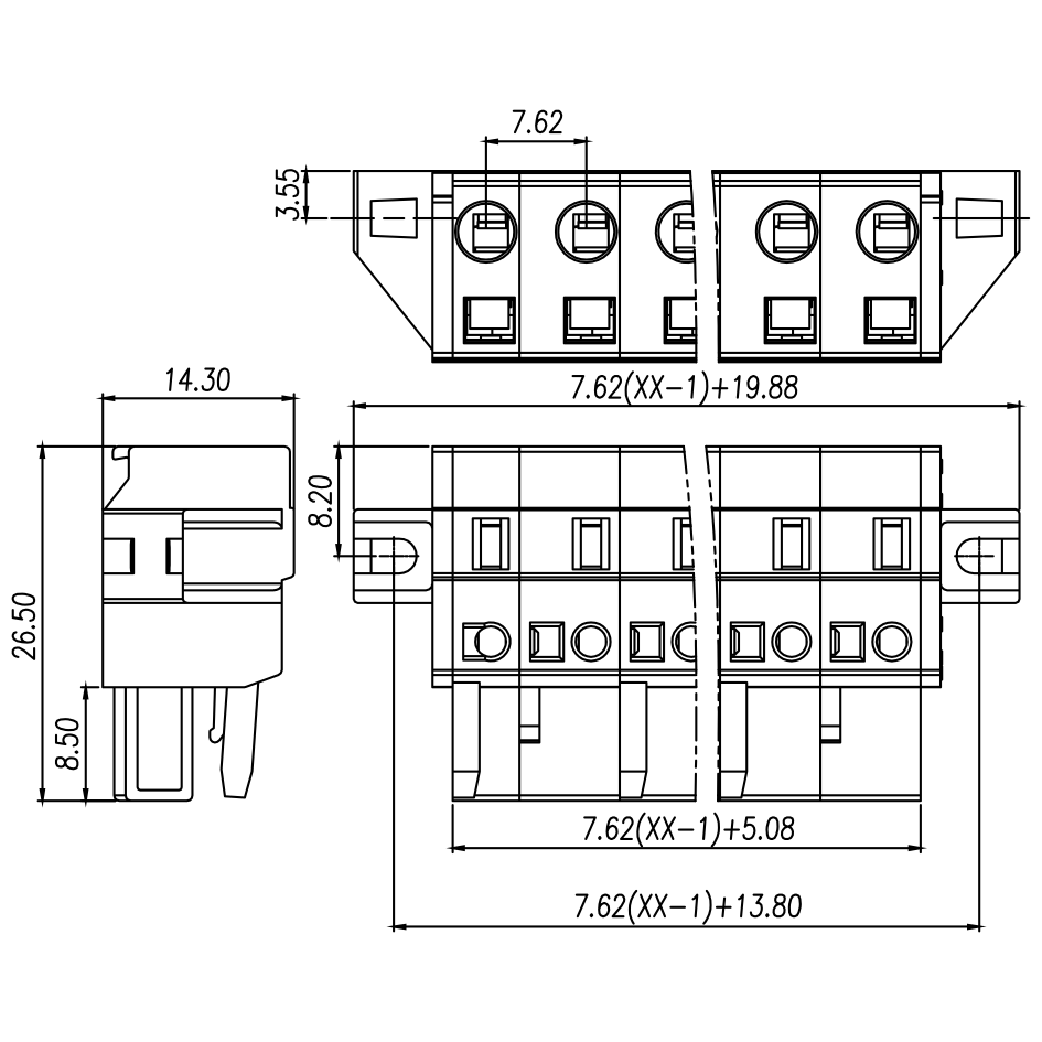spacing: 7.62mm