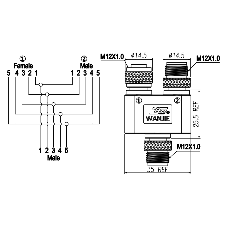 M12 Y型分配器,公-公-母