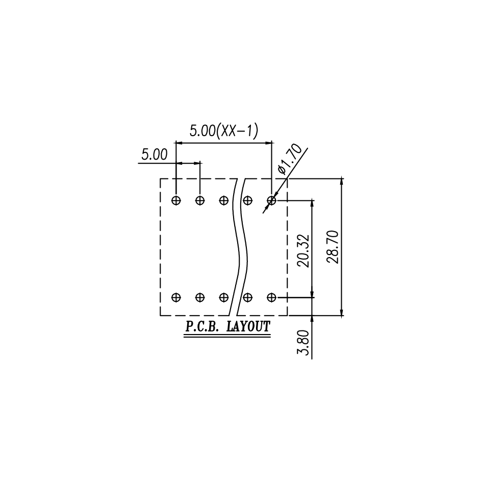 PCB板孔径 PCB Hole Diameter [mm]∅1.7